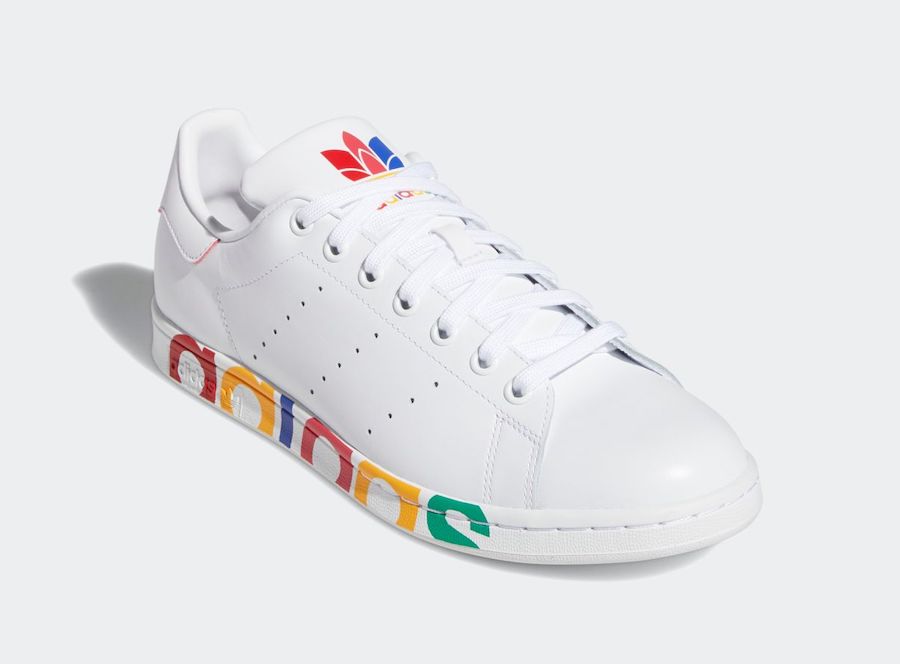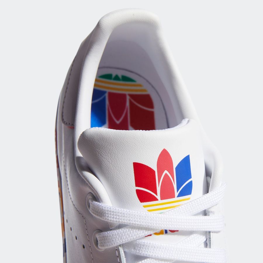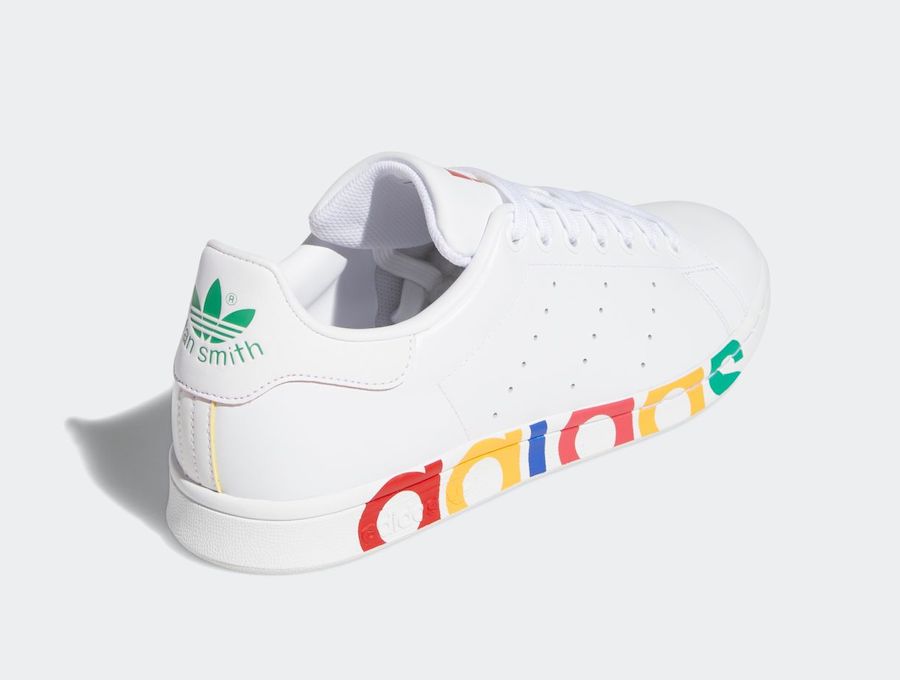 O primeiro par que temos aqui é o adidas Stan Smith do "Olympic Pack", a edição traz um cabedal em couro branco com a marca "adidas" em letras coloridas na lateral, uma clara referência aos anéis olímpicos. Além disso, outros detalhes multicoloridos completam a língua e o calcanhar.
