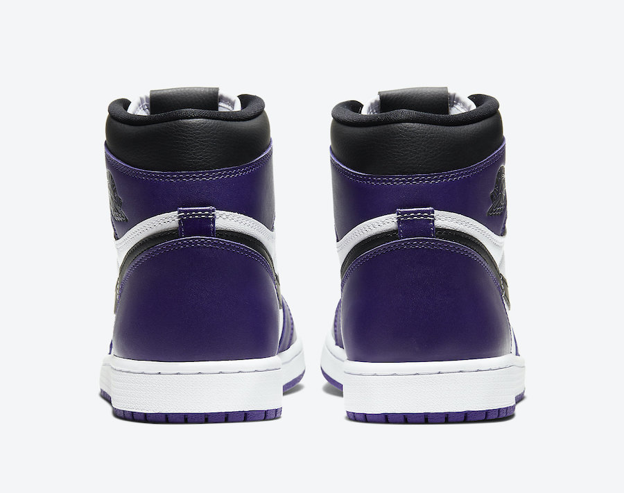O Air Jordan 1 "Court Purple" 2.0 tem cabedal feito em couro e troca o toebox roxo pelo mesmo painel da lateral, o branco, o detalhe em roxo fica por conta de todo contorno do bico, passando pelo cadarço e indo até a parte traseira. Detalhes em preto finalizam os detalhes dessa edição.