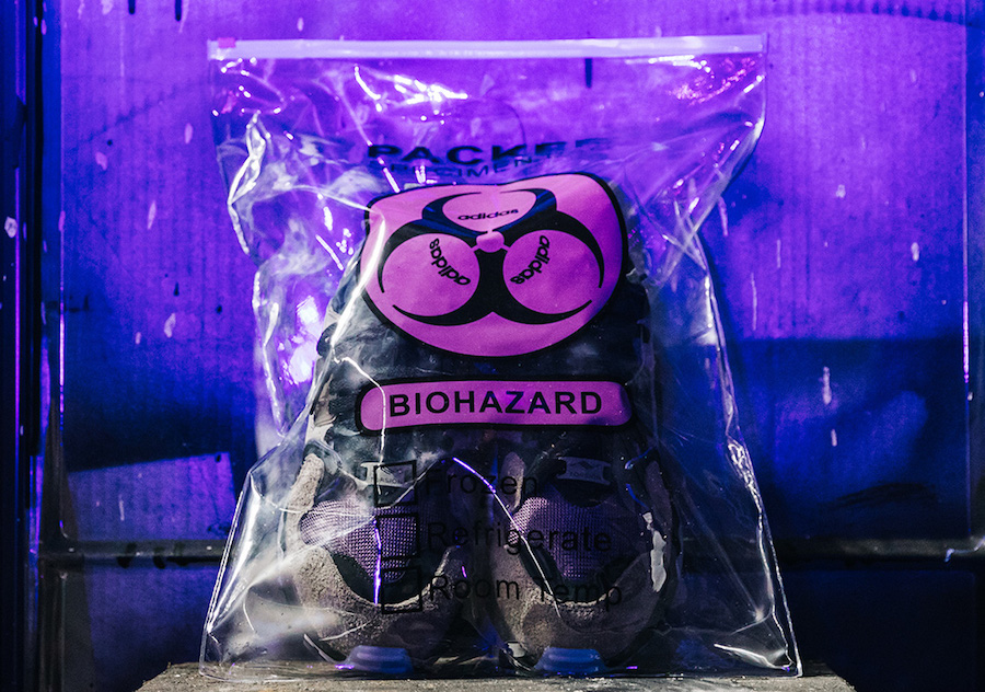 O tênis exibe a coloração preta e cinza com detalhes e roxo (em alusão a violeta) e foi produzido com materiais premium, sendo o cabedal em malha sobreposta de couro de porco, camurça e nubuck. O modelo ainda conta com o amortecimento Boost para retorno de energia a cada passada, a Torsion Bar em forma de X para maior estabilidade e o logotipo da Packer Shoes na língua do pé direito.