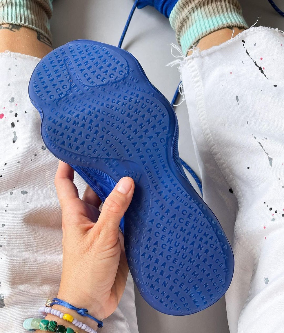 O novo tênis da colab apresenta cabedal em Primeknit com "Humanrace" na lateral, quase que lembrando a construção de alguns Yeezy Boost, desde o 350 até o 380. A entressola ainda aparenta conter a tecnologia Boost, mas a marca ainda irá confirmar essa informação.