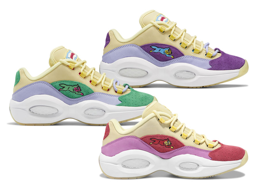 O BBC x Reebok Question Low será lançado em três cores no dia 6 de Novembro exclusivamente na BBC, um lançamento mais abrangente acontece no dia 12 de Novembro de forma regional, a colorway que será lançada em todo o mundo é a que mescla tons de roxo. Lembramos que algumas versões desembarcaram ao Brasil, indicando que também podemos ver essa por aqui.
