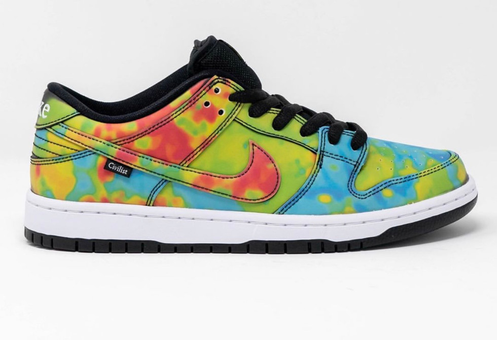 O Nike SB Dunk Low "Thermography" x Civilist Berlin será lançado no dia 29 de Agosto em seletas skateshops pelo mundo. Um lançamento através da plataforma SNKRS ainda deve ser confirmado.