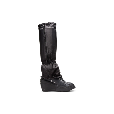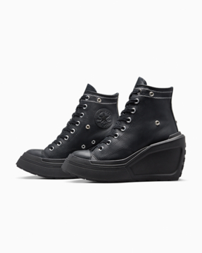 Para traduzir o De Luxe Wedge tanto de maneira refinada quanto inovadora, Martine começou sua exploração criativa pela silhueta. Tendo como referência macacões utilitários usados para andar na água, que têm seu comprimento ajustável na própria peça, a nova versão do par propõe duas formas de estilização: com e sem a perneira que lhe permite ser um modelo de cano médio, mais próximo do Chuck 70, ou de cano alto.