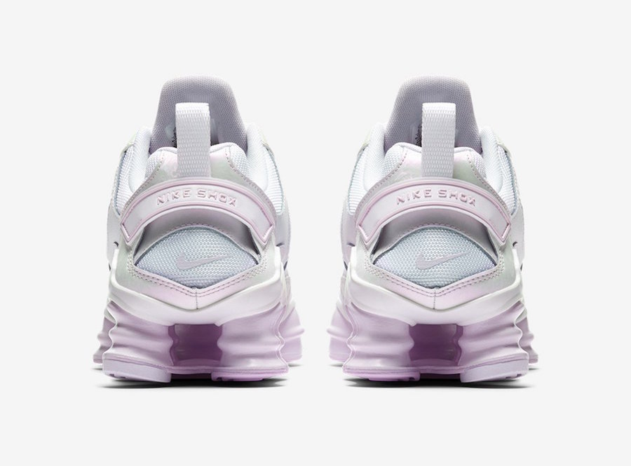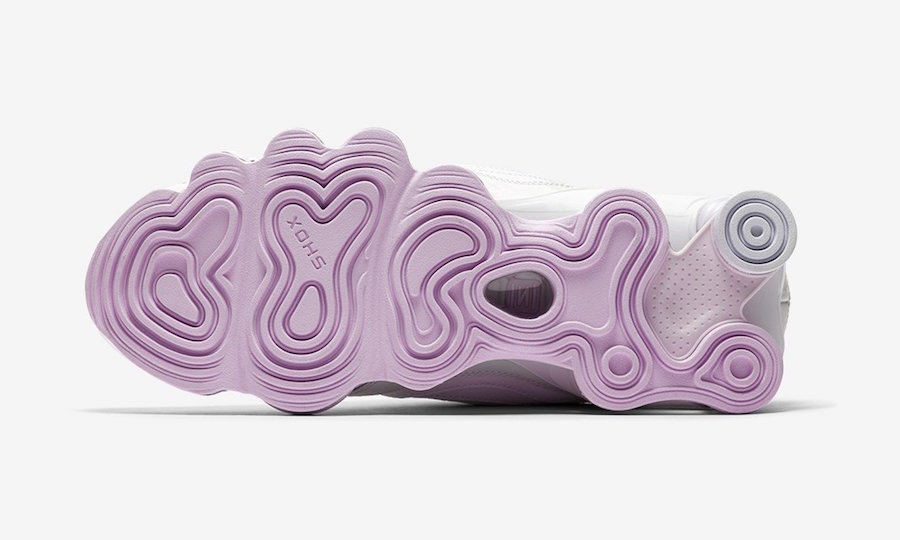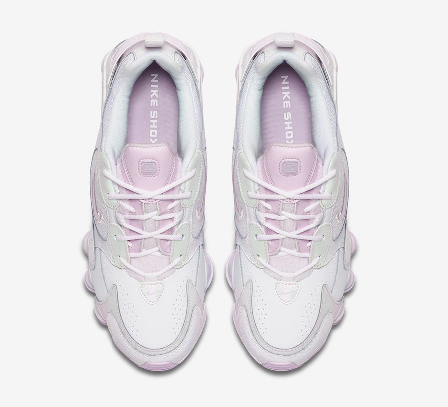 O tênis exclusivo para o público feminino foi produzido com cabedal que mescla malha e couro na cor branca perolizada, sobre solado que conta com a tecnologia de amortecimento Shox por toda a extensão na cor rosa claro.