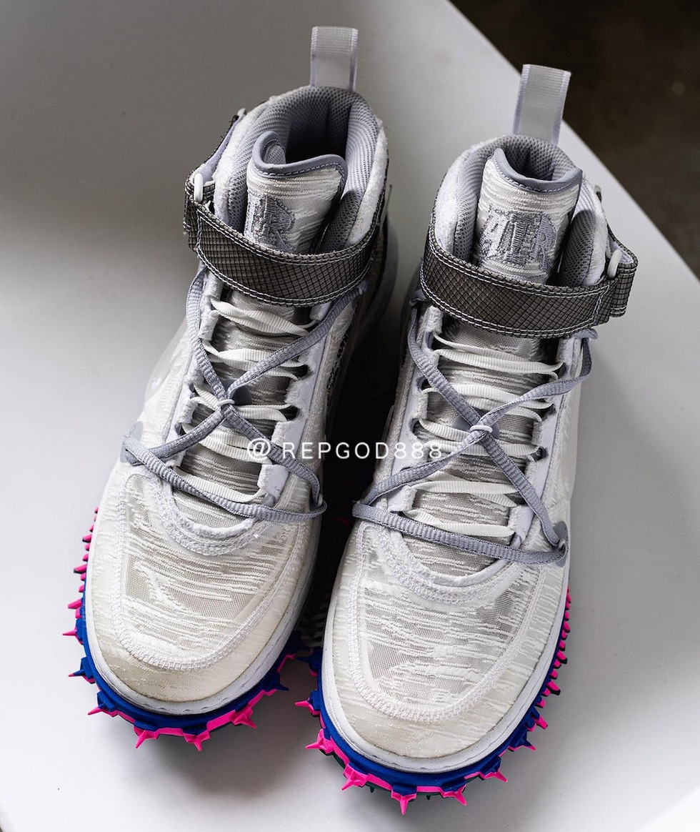 A edição será lançada em duas cores com diferentes intervenções do artista e detalhes clássicos da sua marca Off-White. Nas imagens podemos perceber um swoosh em uma peça de plástico translúcida, um segundo sistema de amarração assimétrico (igual vimos no Dunk Low) e uma sobreposição que parece ter também uma alça por cima da língua. Finaliza os detalhes um solado "espetado", assim como já vimos em outros silhuetas, e o famoso lacre preso ao cadarço.