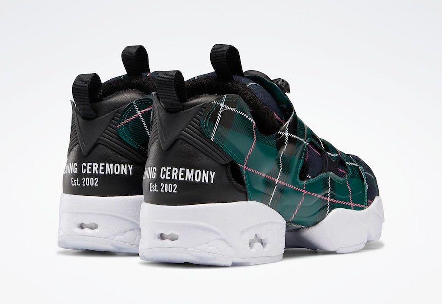 O Instapump Fury OG (tênis que conta com o famosa tecnologia Pump onde o calçado se ajusta aos pés de acordo com o acionamento da válvula de ar) foi apresentado em duas exclusivas colorways, formando o pack apelidado como "Plaid". A coleção exibe gráficos xadrez em seus painéis sobrepostos no cabedal, além do logotipo da Opening Ceremony bordado na região do calcanhar.