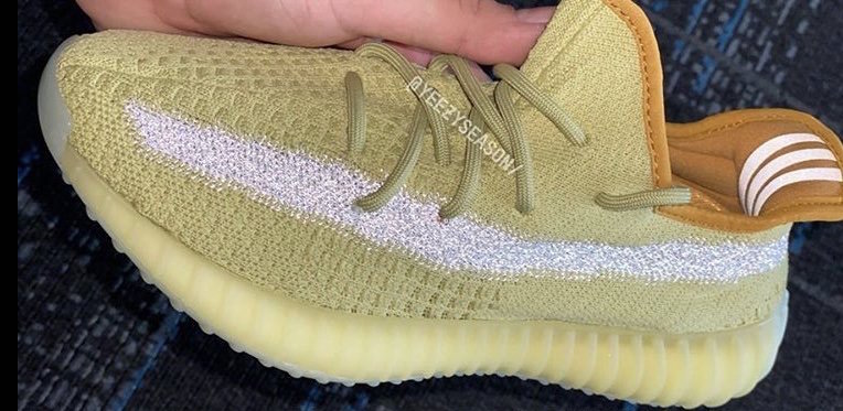 A mais recente a ter sua foto vazada é apelidada de "Sulphur", vestindo uma tonalidade que fica entre o amarelo e o bege, com acentos cinza e laranja. O modelo segue a mesmo padrão estético dos anteriores, com cabedal produzido em Primeknit, entressola Boost e solado de borracha.