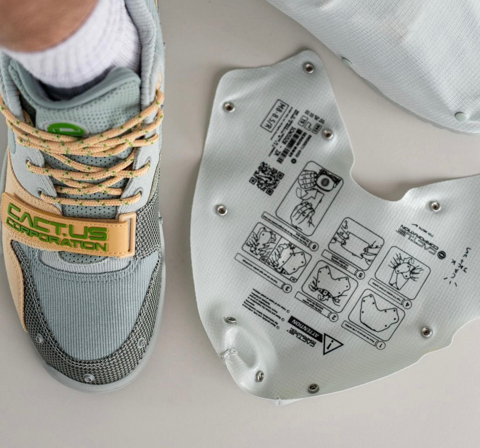 O Travis Scott x Nike Air Trainer 1 deve ser lançado em três cores, todas com uma capa superior removível, construção em cordura e malha, zíper na região traseira e a marca CACT.US CORPORATION na alça com velcro da parte frontal.