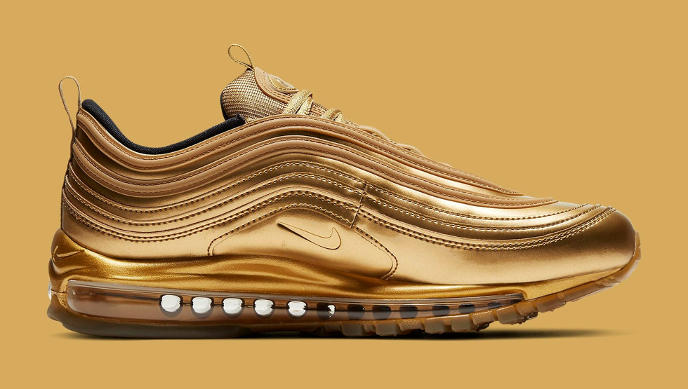 A Nike saiu na frente e divulgou o lançamento de um Nike Air Max 97 "Gold Medal", com cabedal completamente metalizado em couro envernizado na cor dourada, assim como a medalha mais cobiçada da Olimpíada.